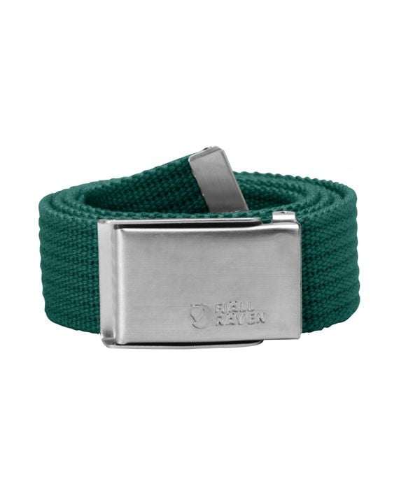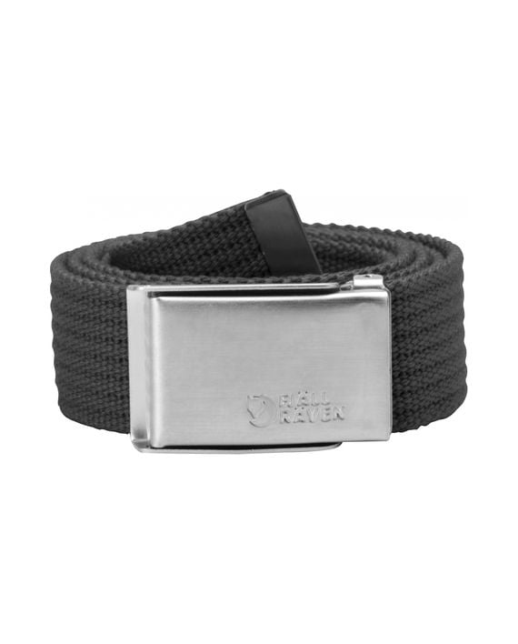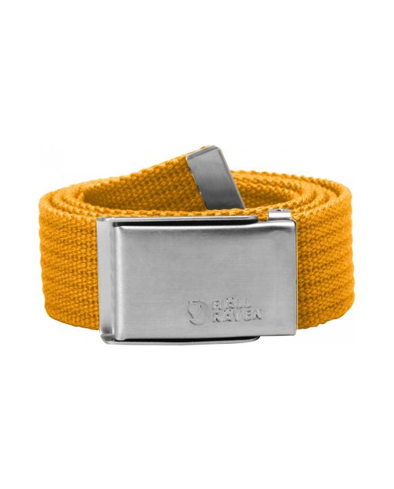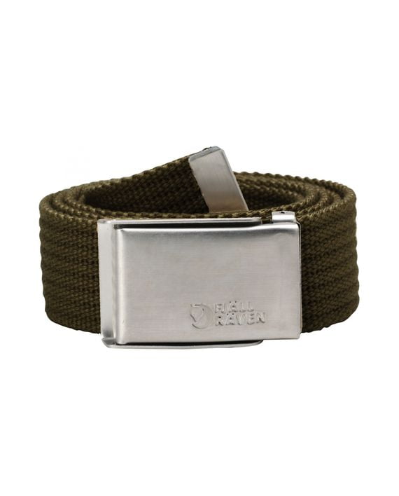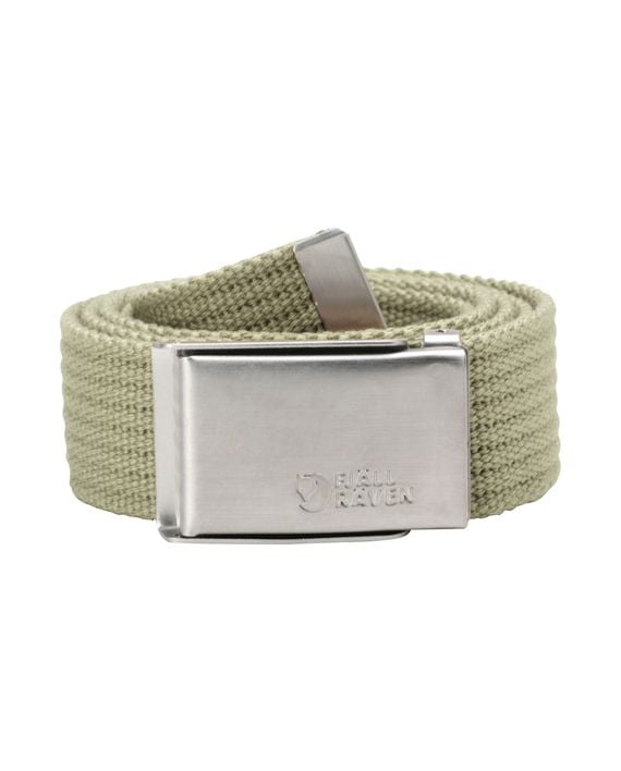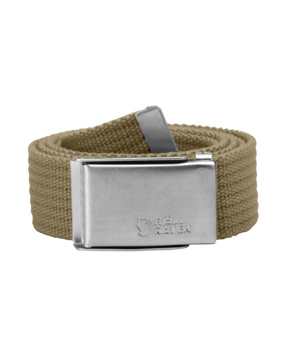 Fjällrävenbelte i lerretsstoff med blank metallspenne.