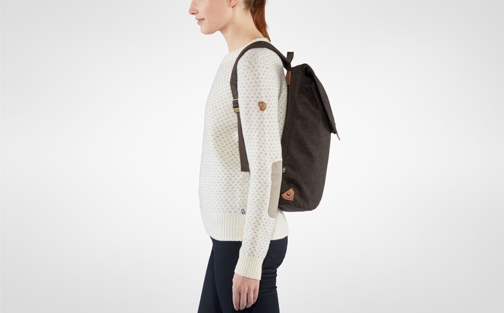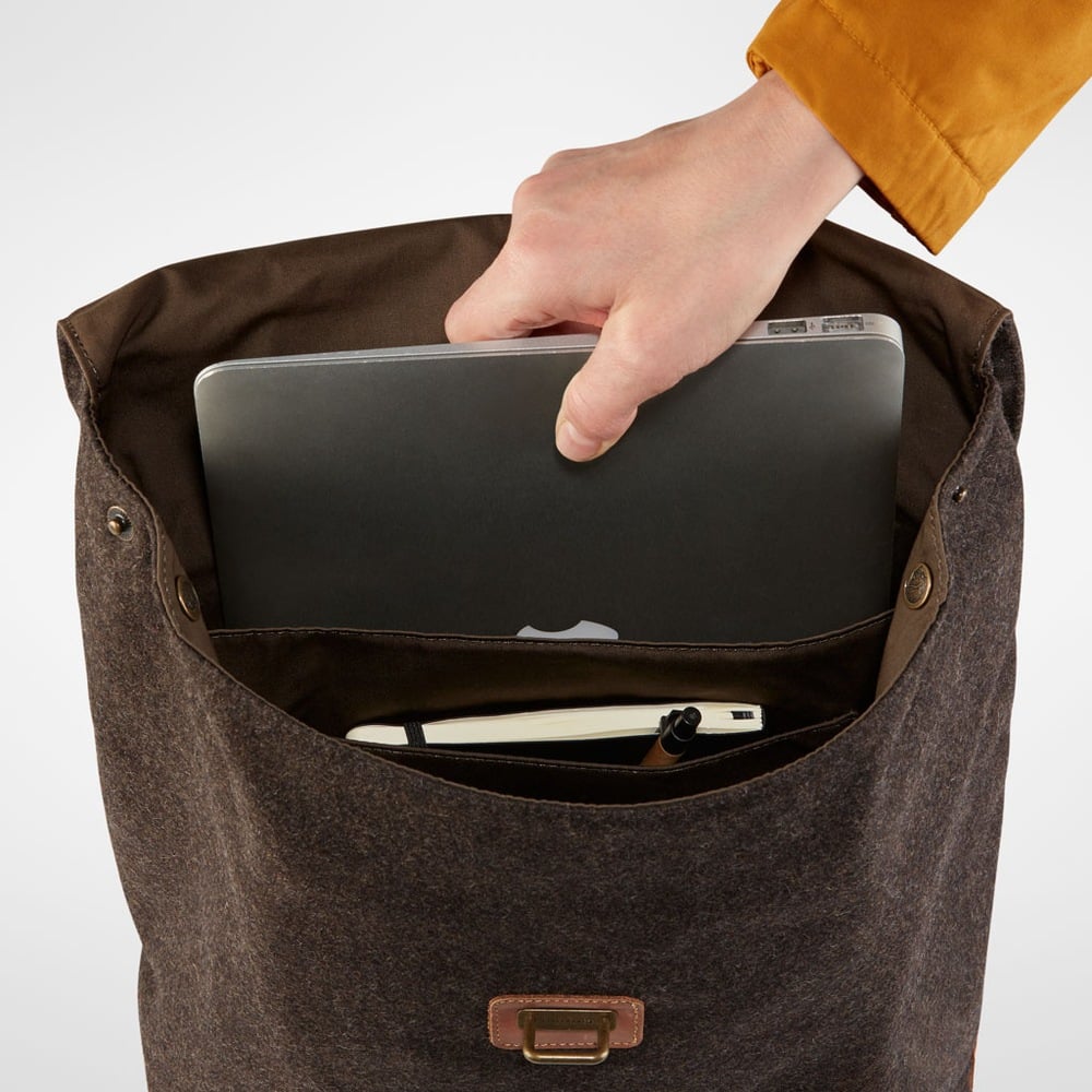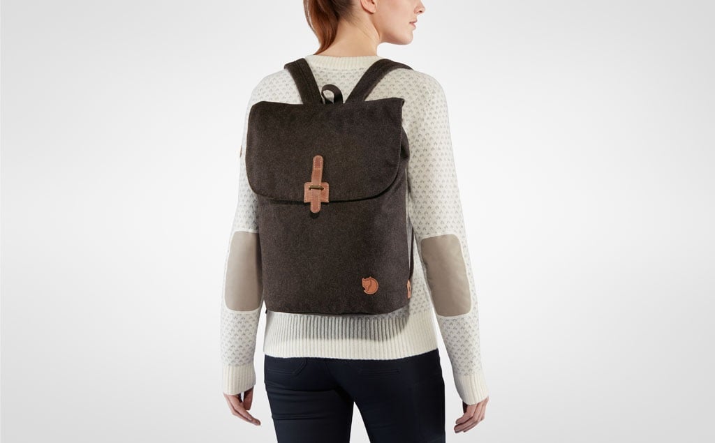 Klassisk ryggsekk for hverdagsbruk, i slitesterkt Melton-stoff laget av resirkulert ull.