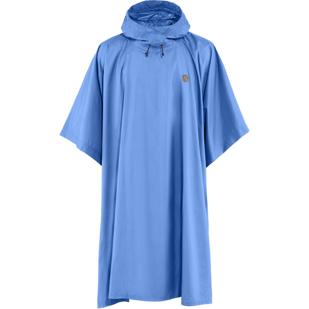 Fjällräven Poncho er en lett og lang poncho med hette som dekker både deg selv og ryggsekken mot vær og vind.  Du beskytter både overkropp og bein, men en ponsjo gir bedre ventilasjon enn et helt regnsett.