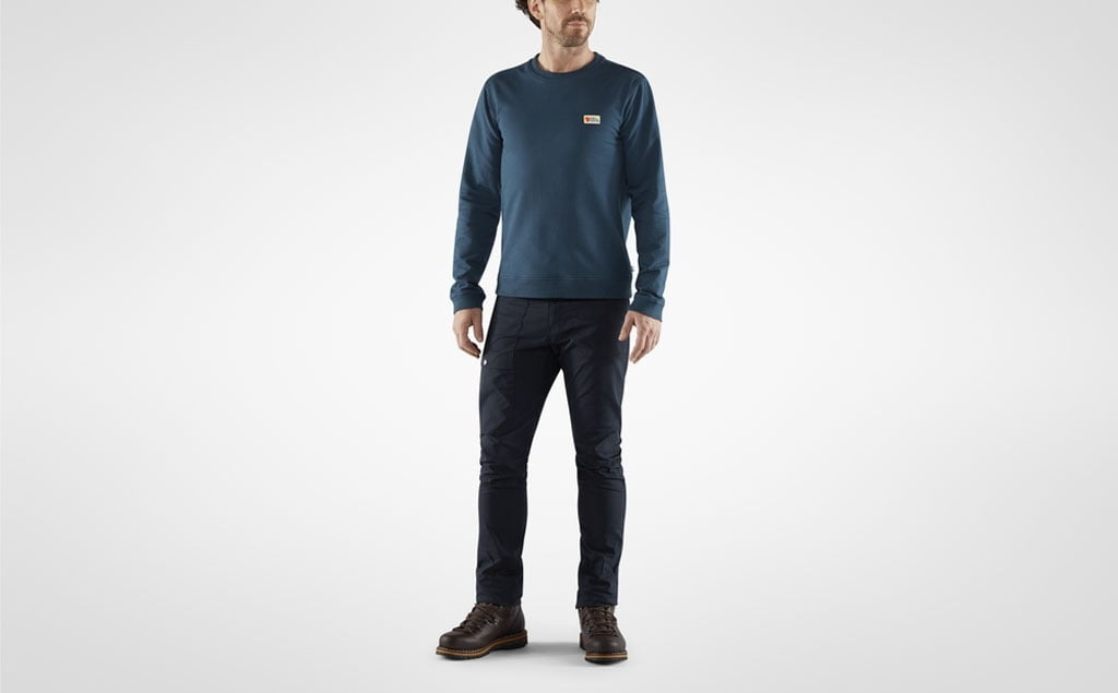 Tidløs design med rund hals, mansjetter og fald i vrangbord og en klassisk logo fra Fjällräven på brystet. Laget av komfortabel økologisk bomullsjersey med løkkestrikk på vrangen, og er perfekt til bruk både i byen og på turer i helgene.